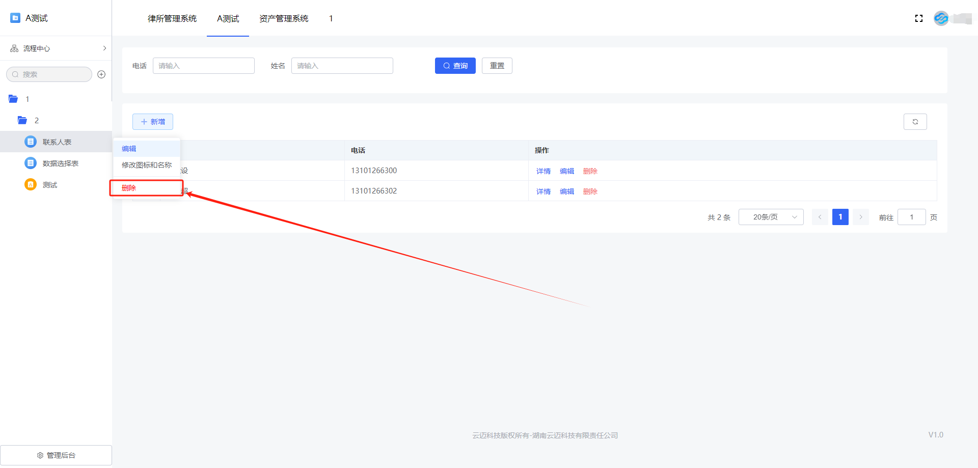 表单删除:点击「表单后的设置按钮 >> 删除」。