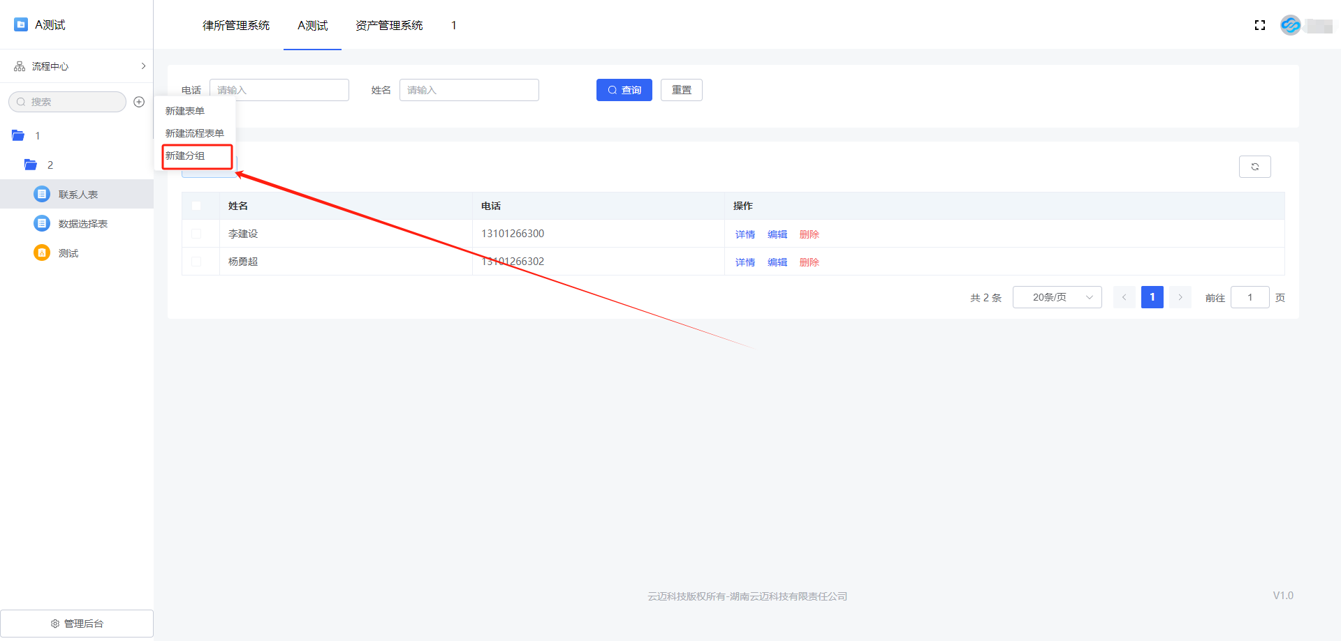 拖拽表单/分组也可以对其进行移动和排序,或将表单/分组移进、移出分组中。