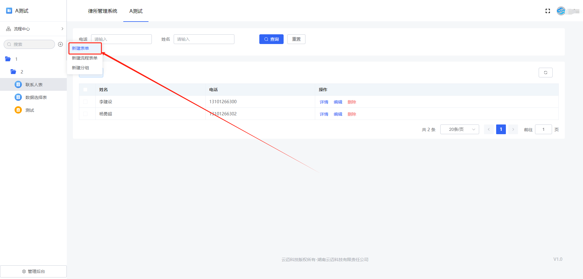 表单:由字段组成的用于收集数据的表,可以切换为流程表单