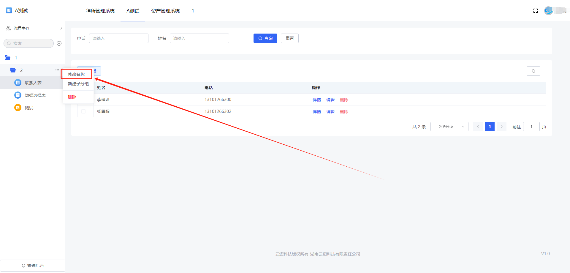 如需修改分组名称,可点击「分组后的设置按钮 >> 修改名称」,修改名称后点击「确定」即可: