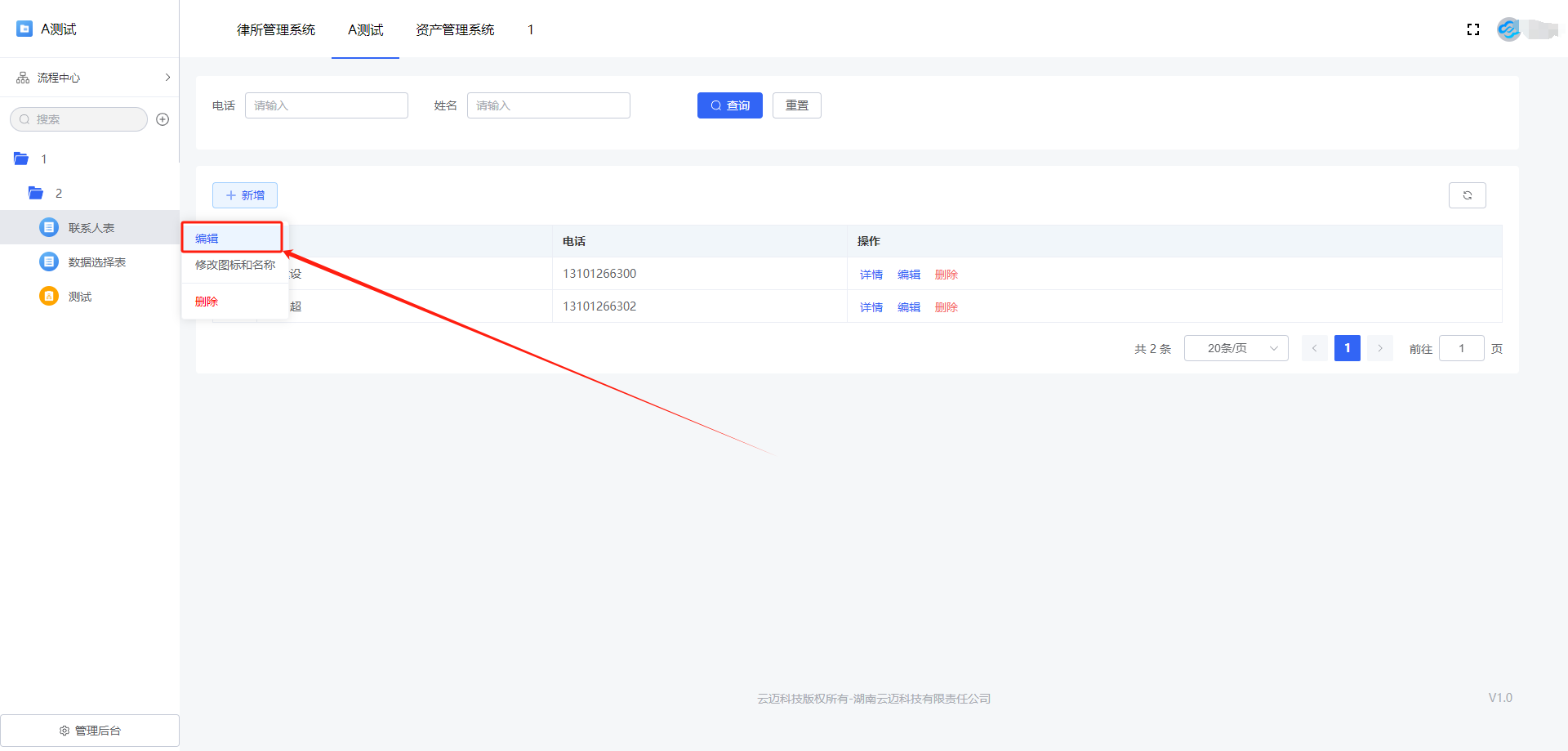 可通过如下入口进入表单设计,编辑表单: