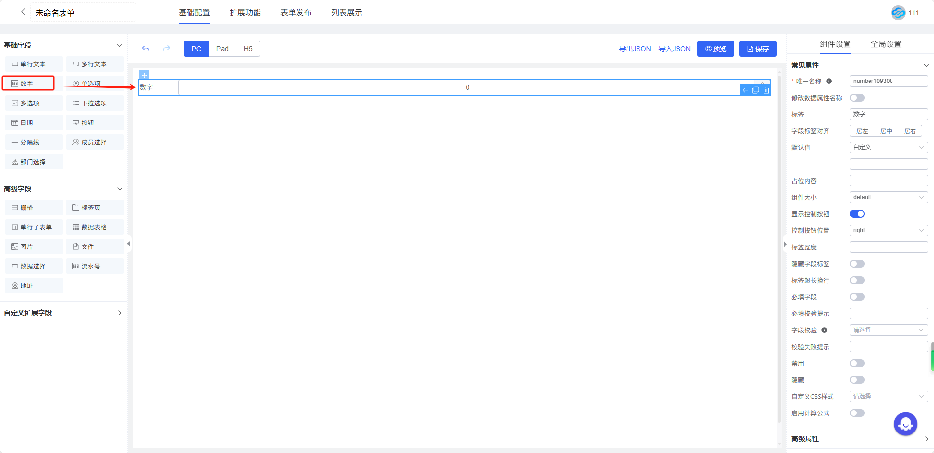 目录 搜索 展开 极速搭PC端用户手册1.注册登录2.工作台介绍3.应用中心4.功能步骤介绍5.快速搭建应用6.智能助手7.邀请成员及团队切换极速搭产品功能详细介绍表单设计字段基础字段单行输入多行输入计数器单选项多选项下拉选项日期按钮分割线成员选择部门选择高级字段栅格标签页单行子表单数据表格图片文件数据选择流水号地址自定义扩展字段开关评分颜色选择器静态文本HTML卡片富文本级联选择提示通讯录管理内部组织部门组织结构成员管理角色管理员角色流程设计流程节点设计节点属性设置流程审批人抄送操作权限节点权限流程属性设置流程提醒流程状态和流程图流程使用仪表盘仪表盘入门仪表盘制作流程仪表盘界面介绍仪表盘基础设置仪表盘数据源如何选择正确的图表工作台应用后台(高级功能)数据工厂数据工厂入门数据流数据流节点详解输入输出横向连接追加合并分组汇总数据筛选字段设置排名累加汇总(求累计值)行转列去重输出表的使用应用使用手册工单管理(轻量化)进销存(无库存版)常见问题 暂无相关搜索结果! 阅读次数:432 本文档使用 MinDoc 发布 计数器 计数器1.功能简介计数器也是数字字段,主要用来记录数字类型的数据信息,如金额、年龄、数量等。和文本不同的是,计数器录入的数字,可以进行计算、统计、汇总等。2.应用场景· 成绩录入:通过计数器记录学生的考试成绩。· 费用报销:通过计数器记录报销金额。3.预期效果如费用申请和报销中,使用计数器记录报销额度。作者:极速搭 创建时间:2024-11-14 14:13最后编辑:极速搭 更新时间:2025-07-11 10:08 提交评论