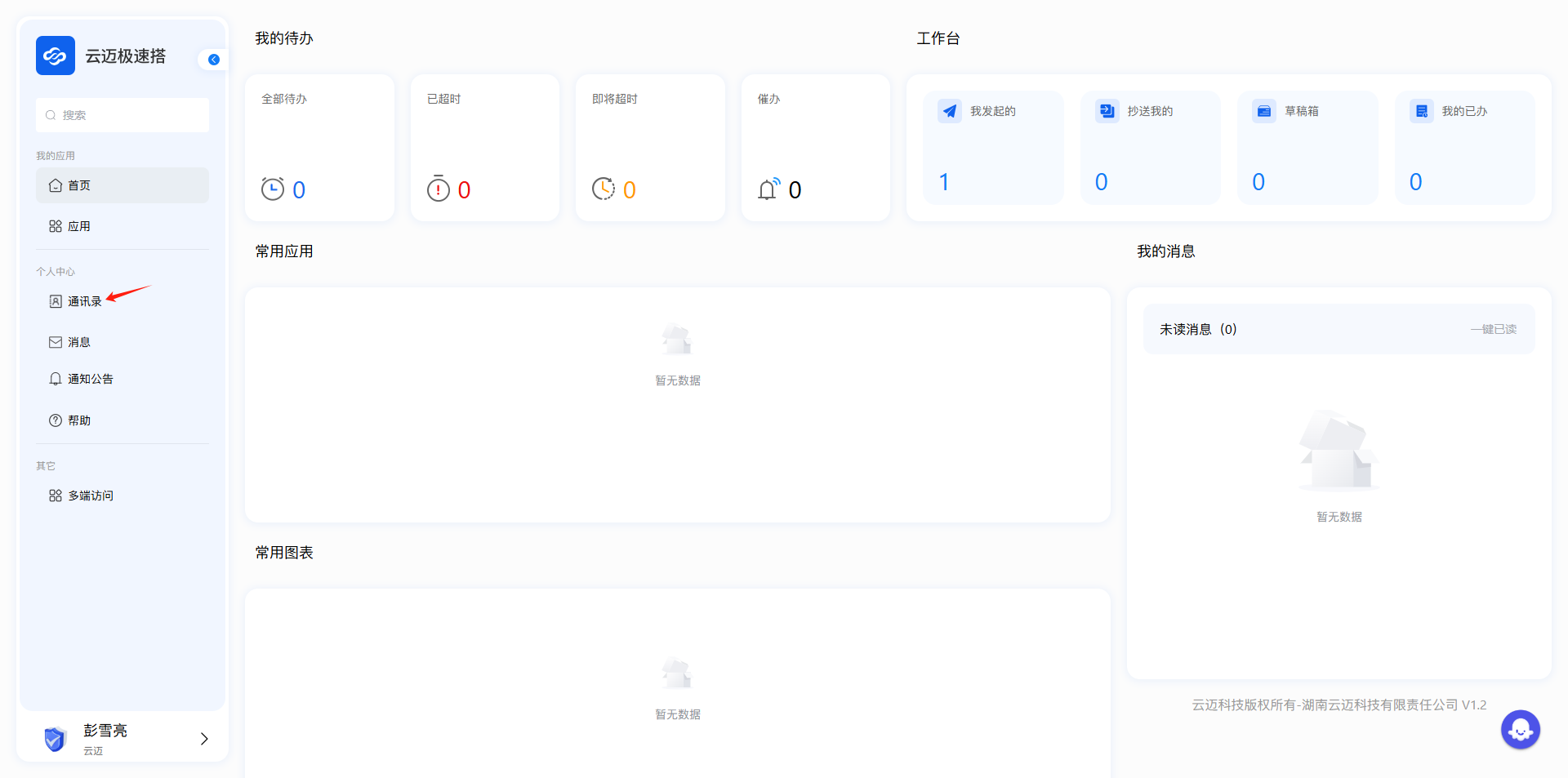 目录 搜索 展开 极速搭PC端用户手册1.注册登录2.工作台介绍3.应用中心4.功能步骤介绍5.快速搭建应用6.智能助手7.邀请成员及团队切换极速搭产品功能详细介绍表单设计字段基础字段单行输入多行输入计数器单选项多选项下拉选项日期按钮分割线成员选择部门选择高级字段栅格标签页单行子表单数据表格图片文件数据选择流水号地址自定义扩展字段开关评分颜色选择器静态文本HTML卡片富文本级联选择提示通讯录管理内部组织部门组织结构成员管理角色管理员角色流程设计流程节点设计节点属性设置流程审批人抄送操作权限节点权限流程属性设置流程提醒流程状态和流程图流程使用仪表盘仪表盘入门仪表盘制作流程仪表盘界面介绍仪表盘基础设置仪表盘数据源如何选择正确的图表工作台应用后台(高级功能)数据工厂数据工厂入门数据流数据流节点详解输入输出横向连接追加合并分组汇总数据筛选字段设置排名累加汇总(求累计值)行转列去重输出表的使用应用使用手册工单管理(轻量化)进销存(无库存版)常见问题 暂无相关搜索结果! 阅读次数:418 本文档使用 MinDoc 发布 通讯录管理 1.功能简介简道云通讯录分为内部组织、管理员、角色的设置与管理。2.应用场景内部组织的管理包括:组织架构角色管理员包括:系统管理员普通管理员3.管理入口首页左侧边栏个人中心作者:极速搭 创建时间:2025-02-18 10:21最后编辑:极速搭 更新时间:2025-07-11 10:08 提交评论